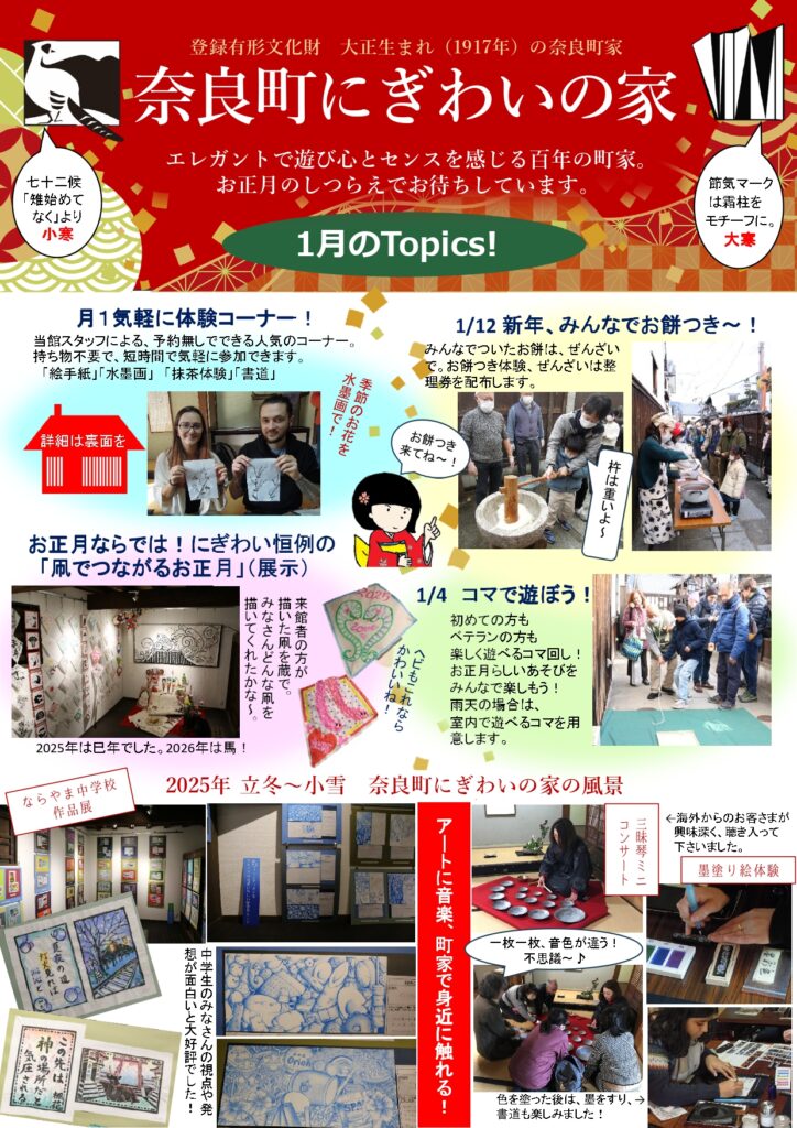 奈良市の観光施設、奈良町にぎわいの家のYouTubeチャンネルです。にぎわいの家は約100年前に建てられた町家で登録有形文化財にもなっています。